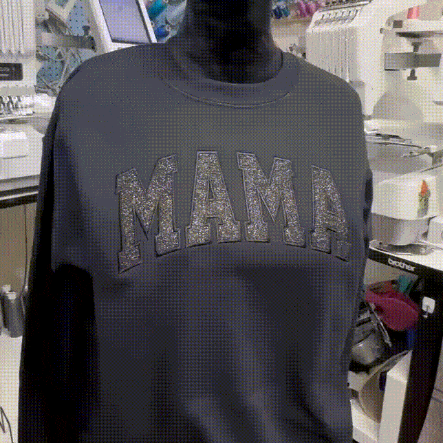 Custom Embroidered Applique Glitter Mama Sweatshirt - Gift for Mom