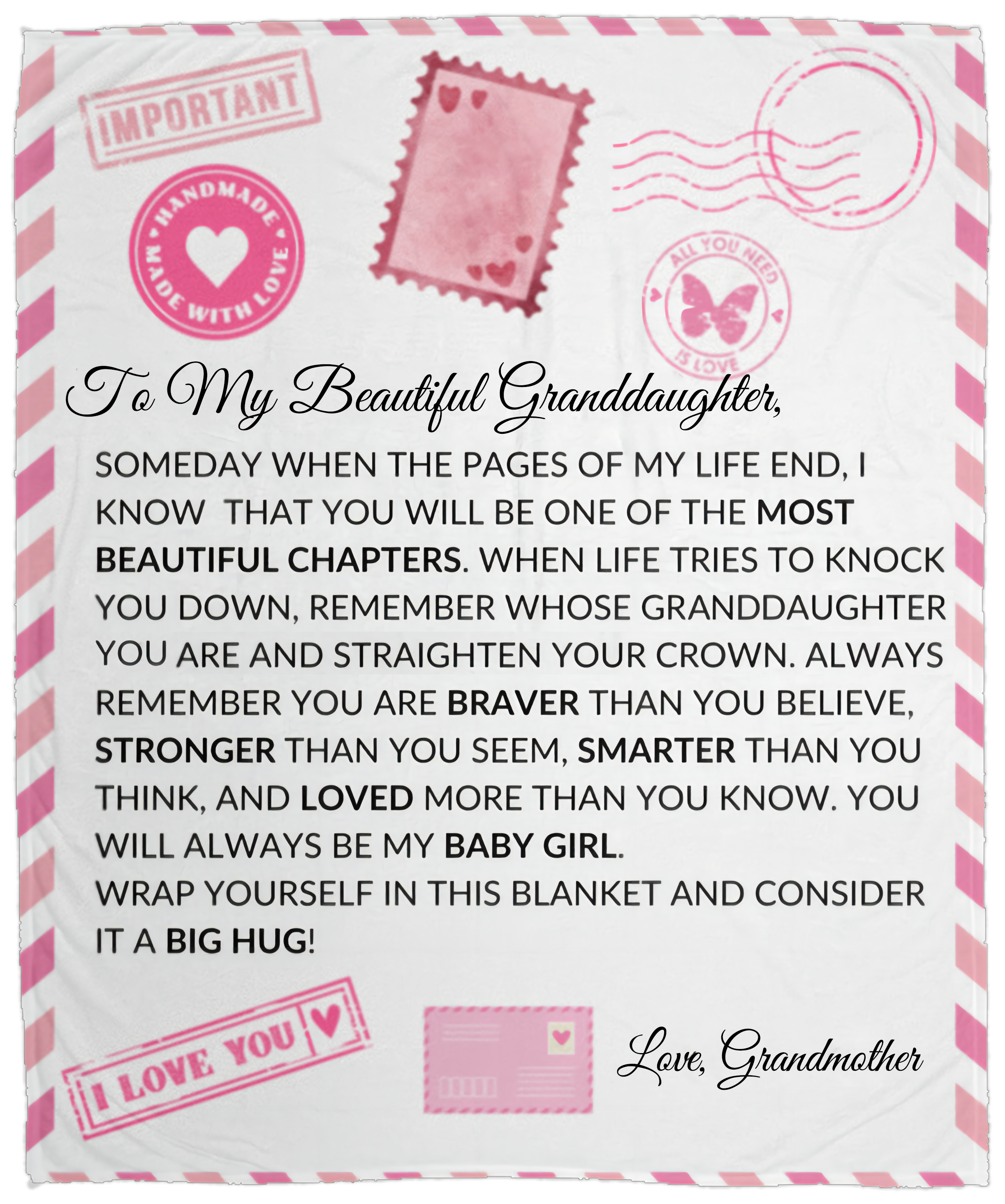 TO MY BEAUTIFUL GRANDDAUGHTER COZY PLUSH POSTCARD BLANKET